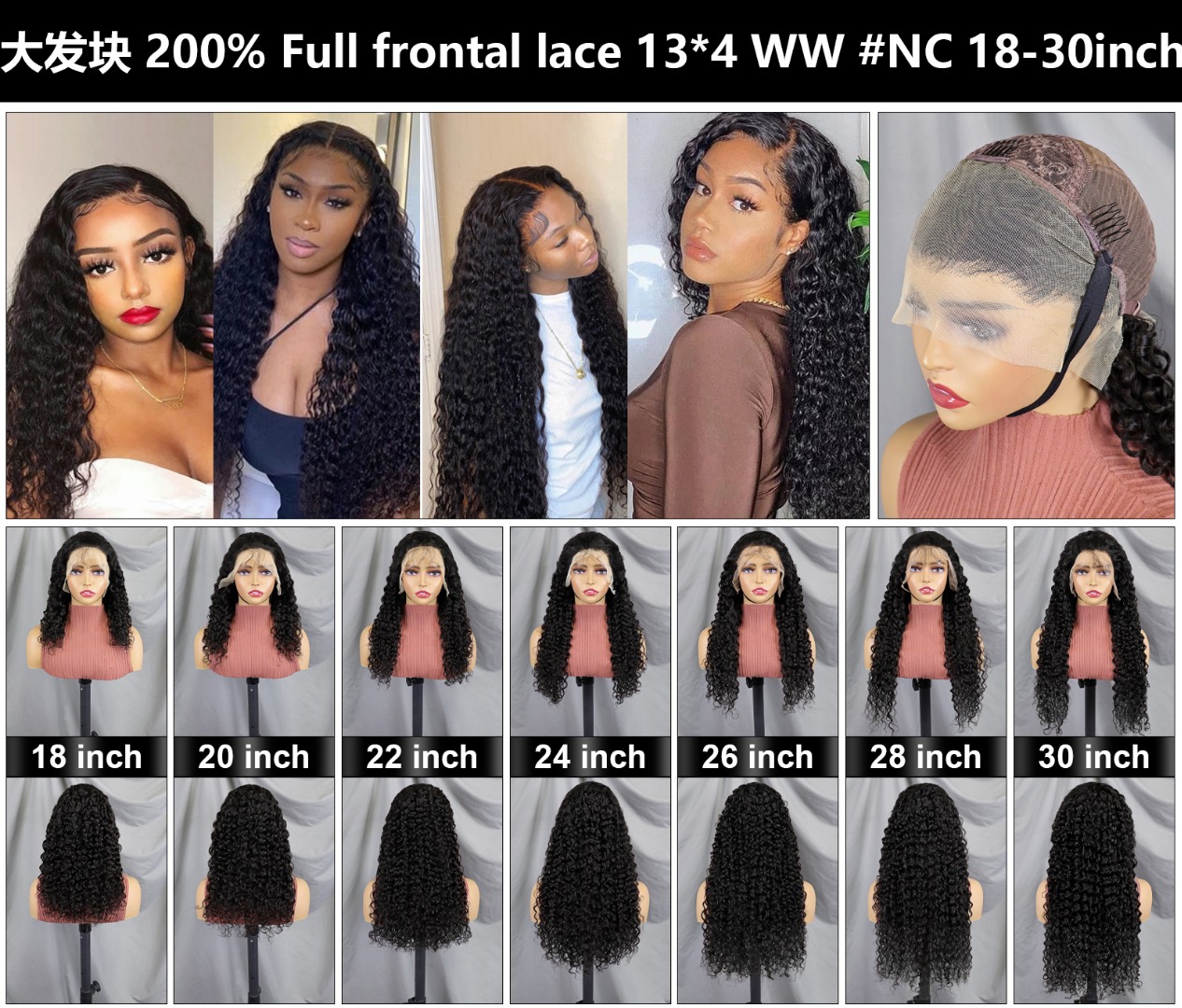 human hair200% DENSITY FULL FRONTAL LACE 13*4 WATER WAVE ANTURAL COLOR WIG