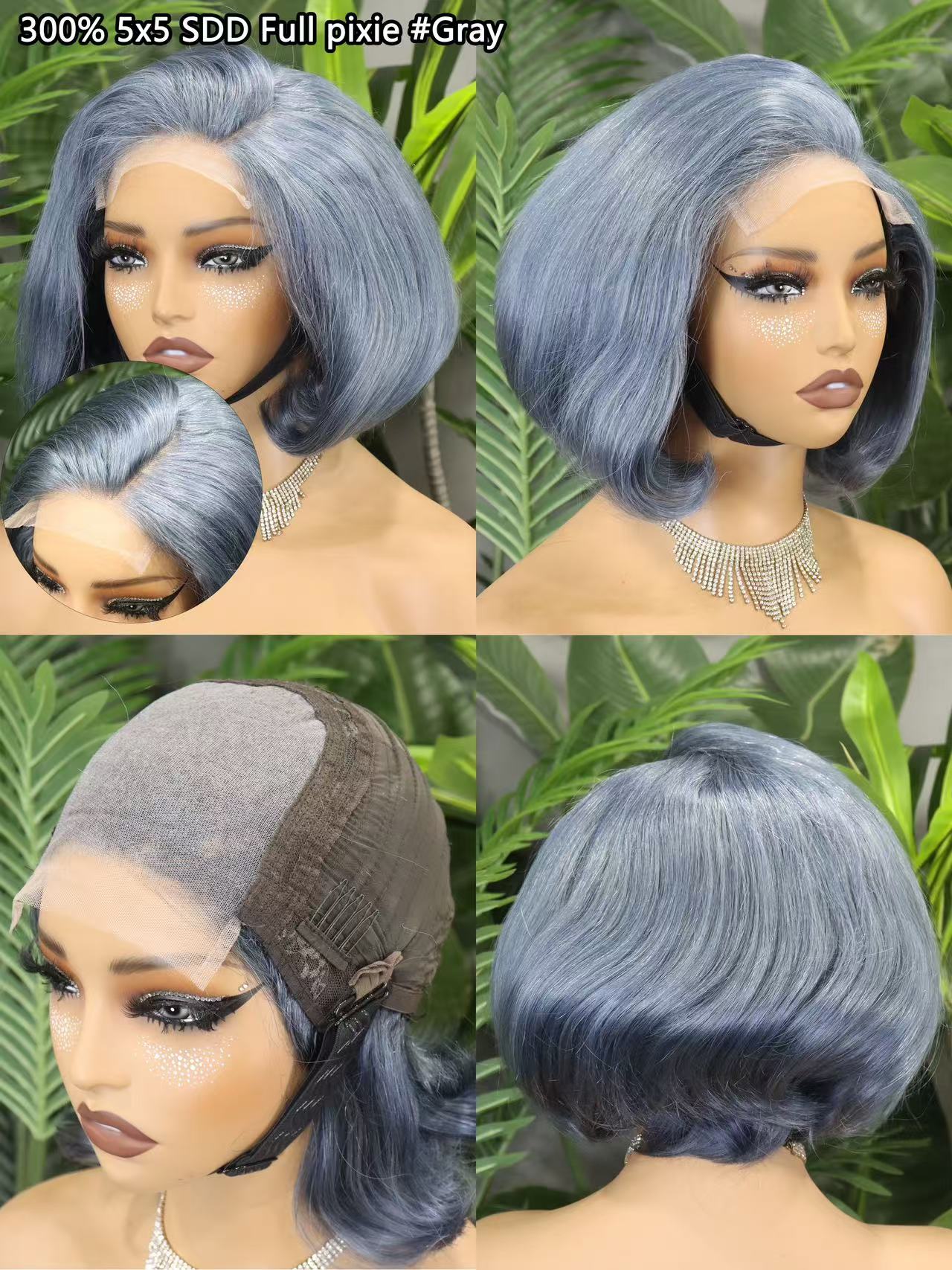 human hair300% DENSITY LACE CLOSURE 5*5 FULL PIXIE IN GREY
