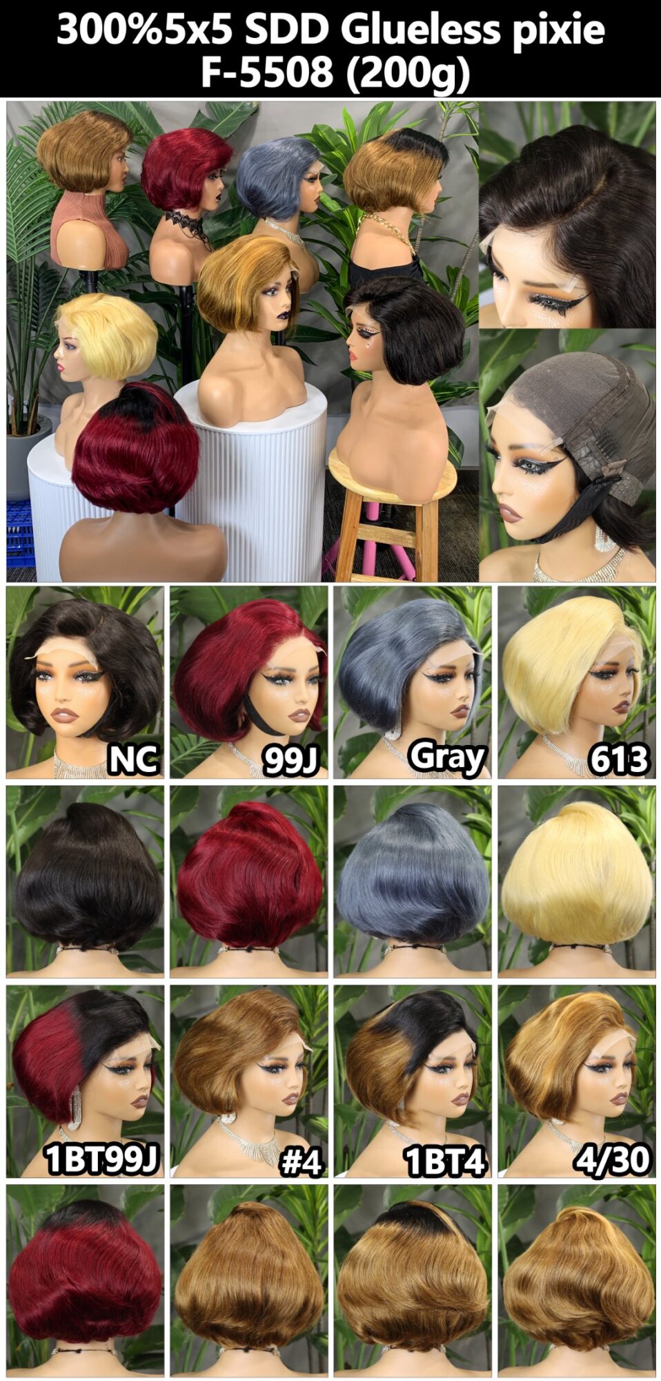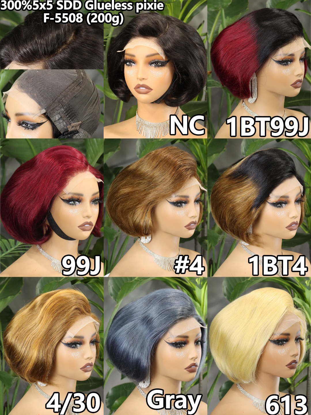 human hair300% DENSITY STRAIGHT LACE CLOSURE DOUBLE DRAWN GLUELESS PIXIE