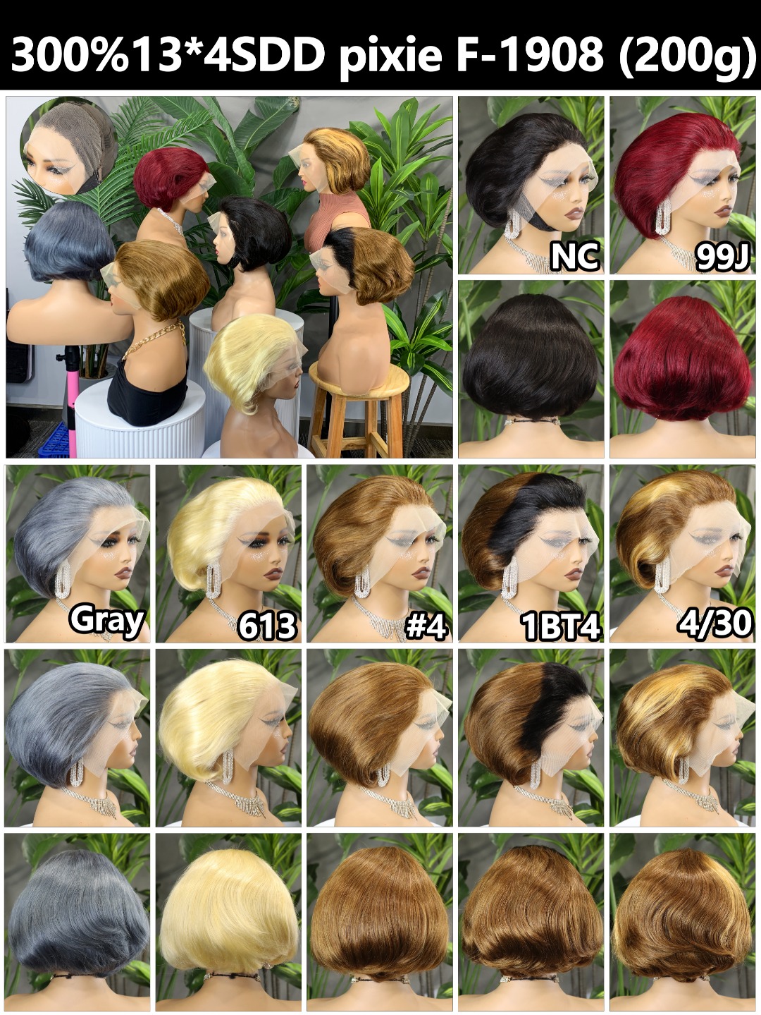 human hair300% DENSITY 13 BY 4 LACE FRONTAL STRAIGHT DOUBLE DRAWN PIXIE WIG