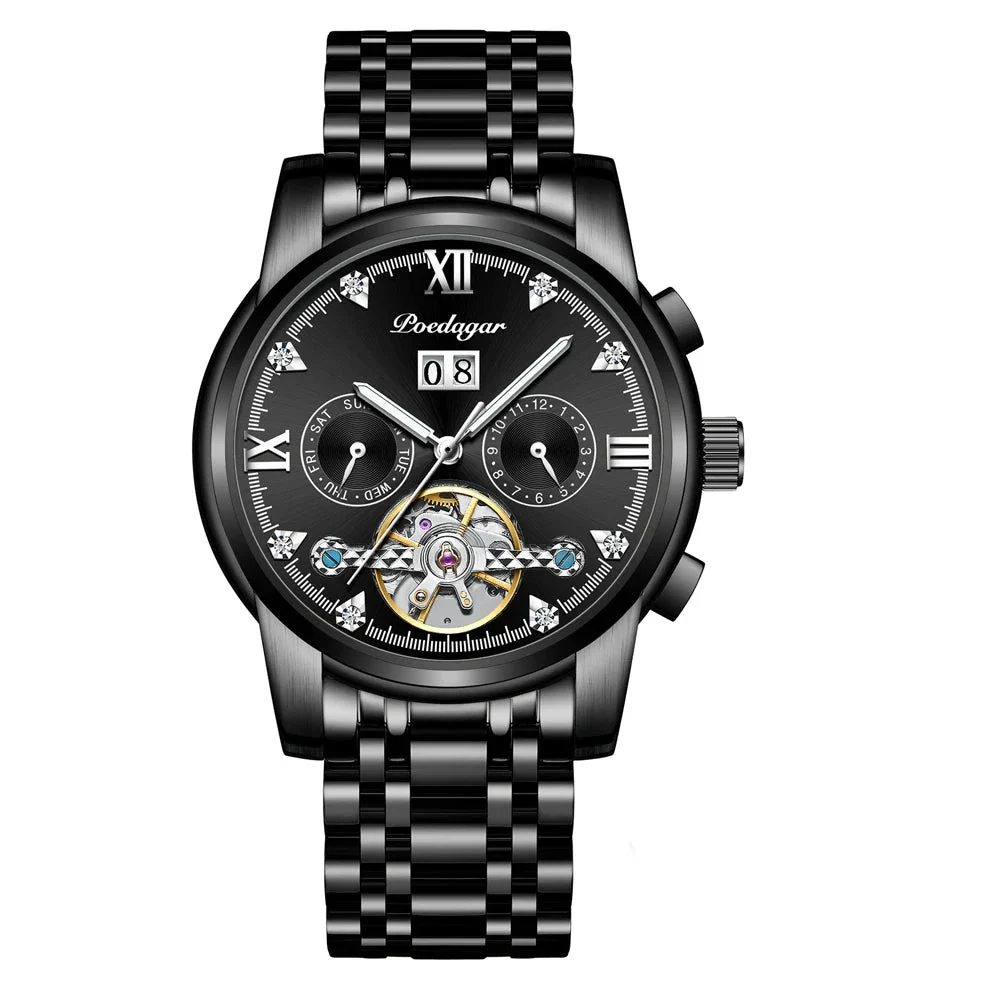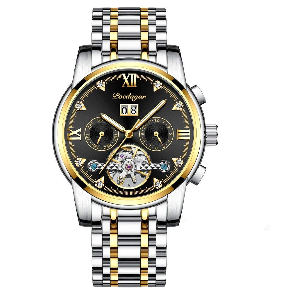 POEDAGARLuminous Hands, Water-Resistant, Auto Date, Complete Calendar, Diver, Swim, Luminous, Week Display